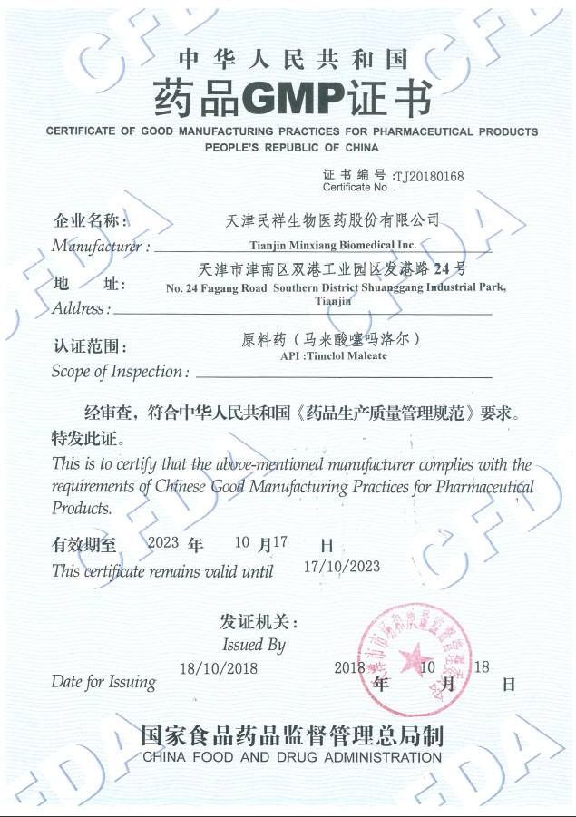 中華人民共和國藥品GMP證書(shū)(馬來(lái)酸噻嗎洛爾)