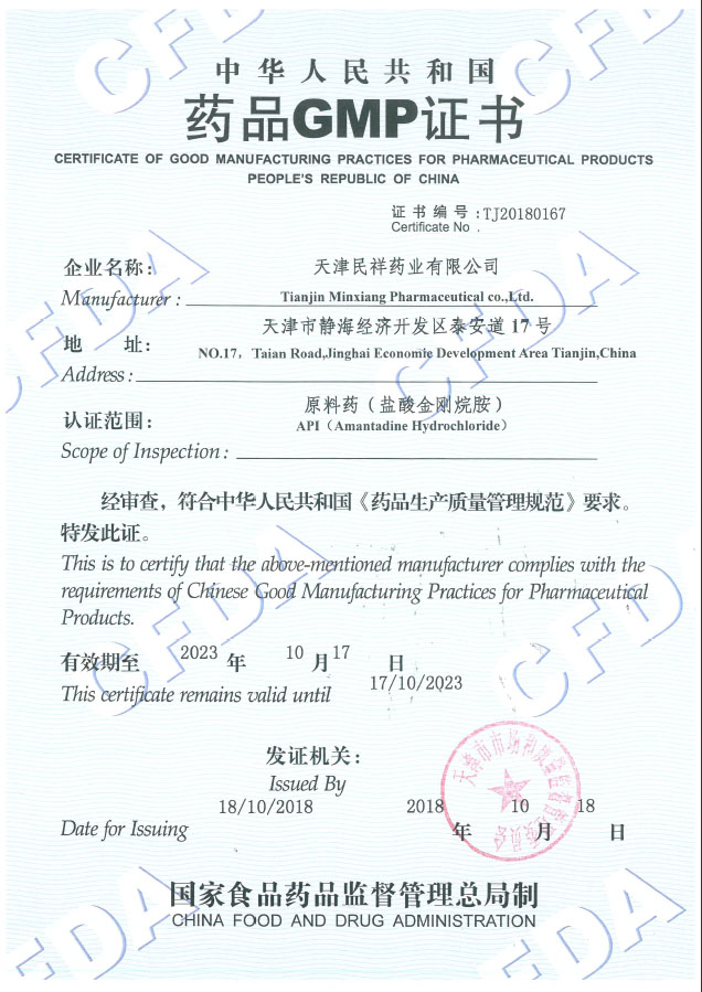中華人民共和國藥品GMP證書(shū)(鹽酸金剛烷胺)